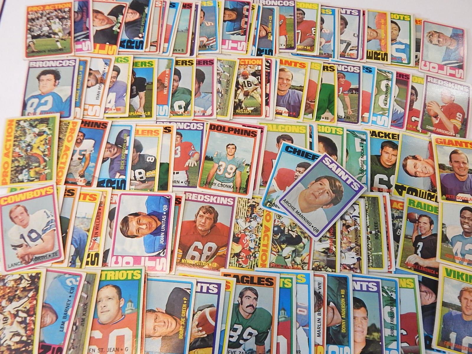 1972 Topps Football Card Lot With Archie Manning Rookie Tarkenton